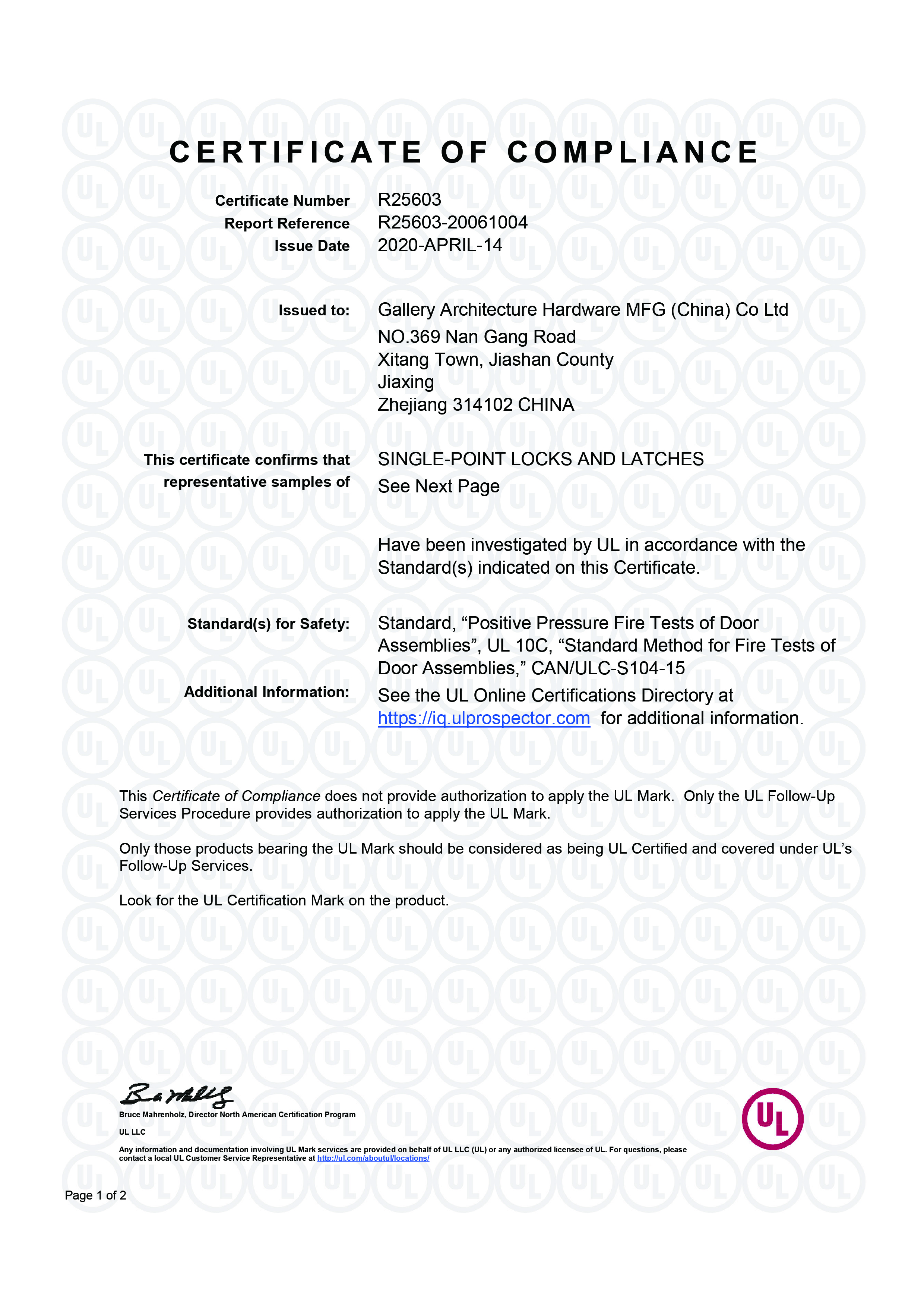 浙江堅迪五金制造有限公司始建于 1995 年。自 2003 開始,公司致力于高標準商業鎖的研發工作,并于 2006 及 2007 年,8700 插芯鎖系列獲得美國國家標準 ANSI A 156.13-2005 一級、ANSI A 156.2-2003 二級和美國 UL 10C3 小時防火測試認證。自 1998 年以來,公司不斷提升產品和客戶服務品質,并獲得了 ISO 9001 的認證。